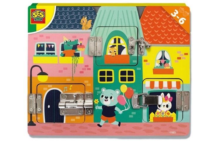 Dzięki tej planszy do zabawy najmłodsze dzieci w zabawny sposób poznają, jak działają mechanizmy blokujące i jak je obsługiwać.