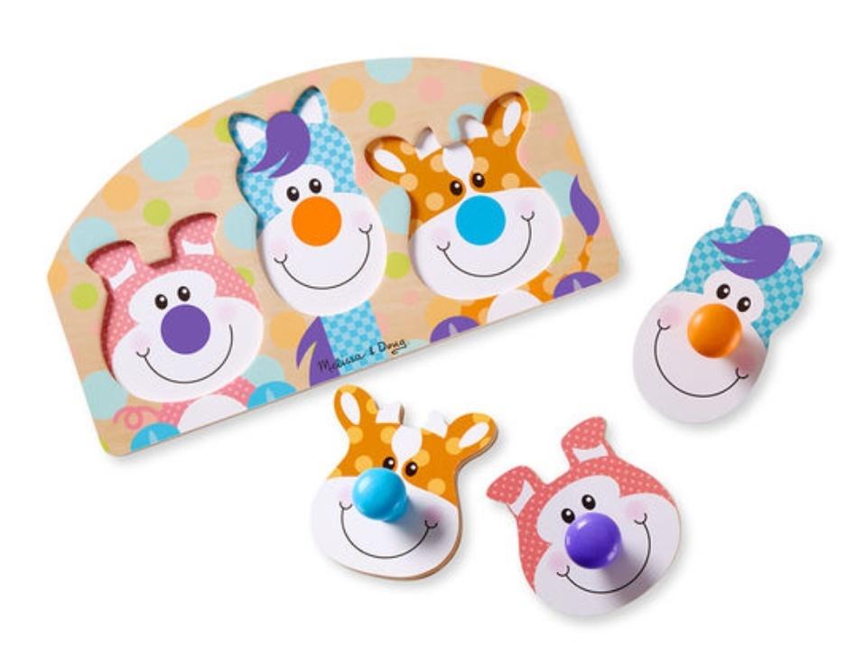 Dopasuj zwierzaczki do ramki. Duże elementy i łatwe w chwyceniu noski zwierzaków pozwolą maluchom na pewny chwyt. Prosta i kolorowa układanka, która rozwinie motorykę, oraz pobudzi wyobraźnię. Nic tylko dopasowywać.