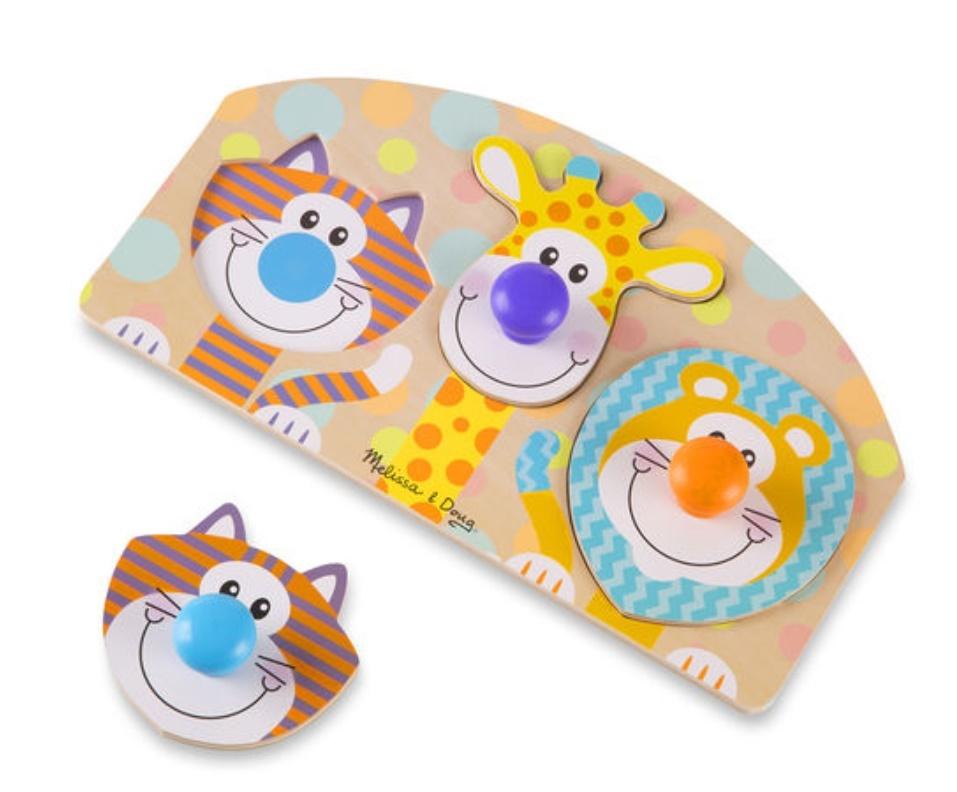 Dopasuj zwierzaczki do ramki. Duże elementy i łatwe w chwyceniu noski zwierzaków pozwolą maluchom na pewny chwyt. Prosta i kolorowa układanka, która rozwinie motorykę, oraz pobudzi wyobraźnię. Nic tylko dopasowywać.