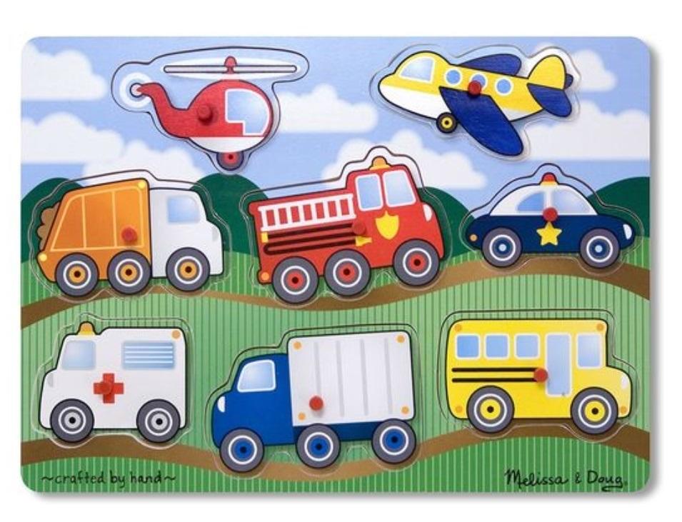 Dopasuj pojazdy do odpowiednich miejsc. Małe uchwyty pomogą na wyciąganie elementów układanki z ramki i ponowne ich umieszczanie. W trakcie zabawy można snuć opowieści o tym co widzimy na obrazku i jak poszczególne elementy nazywamy. Doskonała zabawka zarówno do samodzielnego układania, jak i do zabawy z rodzicem lub opiekunem.