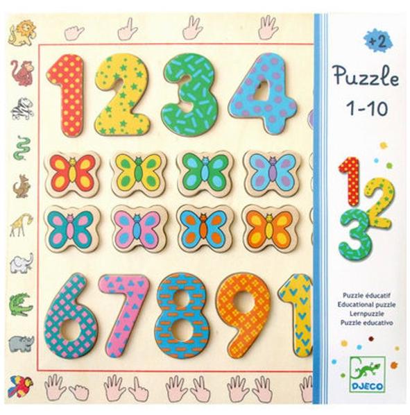 Drewniane puzzle - cyfry.Dodatkowo do układania motyle,które moga posłużyc dziecku do liczenia Walory edukacyjne:rozpoznawanie cyferek,rozwój spostrzegawczości,koncentarcji,logicznego myślenia