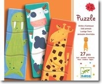 Drewniane puzzle zwierzątka przeznaczone są dla dzieci od 2 lat. Puzzle składają się z 24 elementów Każde zwierzątko podzielone jest na pół i należy połączyć właściwe połówki.Dziecko stworzy w ten sposób 12 kolorowych zwierzątek. Jest to kolejna propozycja firmy Djeco pozwalajaca poprzez zabawe uczyć rozpoznawania kształtów i kolorów. Wiek:2+ Materiał :drewno Wymiary 8,50x 8,50 cm