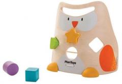 Drewniany sorter w kształcie sowy jest nowoczesną wersją klasycznego sortera, gdzie w otwory należy wrzucać klocki o określonych kształtach.