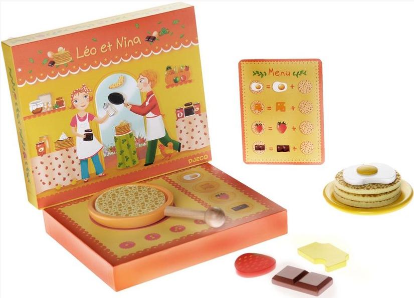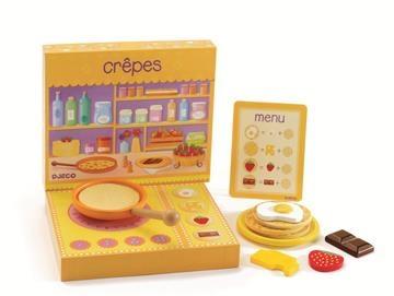 Drewniany zestaw do robienia naleśników,a zarazem zabawę w resteurację.W skład zestawu wchodzi:patelnia,placki naleśnikowe,produkty do nakładania na naleśniki( czekolada,truskawka,jajko,ser),kartka z menu,jakie przygotować szaszłyki. Walory edukacyjne:nauka odwzorowywania zachowań z otaczającego świata,rozwój wyobraźni. Wiek dziecka:4 lata+. Część opakowania staje się kuchenka do zabawy Wielkość opakowania:20 x 20 x 4 cm