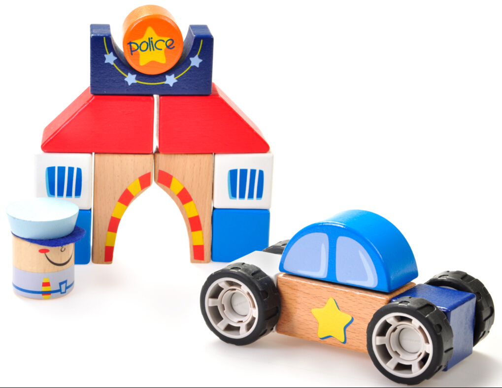 Układanka drewniana Policja -19 elementów część klocków do montowania "na klik" wymiary opakowania: 27 x 24 x 4 cm