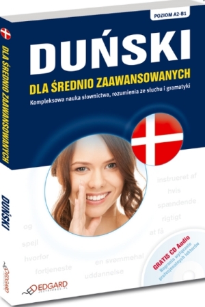 DUŃSKI dla średnio zaawansowanych to kurs, z którym:- aktywnie uczysz się języka- poznajesz niezbędne słownictwo- trenujesz znajomość gramatyki- rozwiązujesz różnorodne ćwiczenia- doskonalisz rozumienie ze słuchu- uczysz się konstruować wypowiedzi pisemneKurs przeznaczony jest dla tych, którzy opanowali podstawy języka duńskiego i chcą kontynuować naukę na poziomie średnio zaawansowanym (A2-B1). Książka (184 strony) opiera się na unikalnej metodzie zintegrowanej nauki. Dzięki niej szybko i skutecznie opanujesz wszystkie kompetencje językowe. Kurs pozwoli ci jednocześnie doskonalić praktyczną znajomość języka, poszerzać zasób słownictwa, rozwijać umiejętności rozumienia tekstów pisanych, rozumienia ze słuchu i samodzielnego komponowania wypowiedzi pisemnych. W 14 rozdziałach tematycznych znajdziesz: krótkie teksty, gramatykę w pigułce, dialogi sytuacyjne, porcję słówek, liczne ćwiczenia leksykalne i gramatyczne, a także interesujące informacje o kulturze Danii. Dla ułatwienia nauki samoukom, na końcu każdego rozdziału umieszczono praktyczny słowniczek. Dodatkowo dołączono do kursu CD Audio, która zawiera nagrania w wykonaniu profesjonalnych lektorów. Znajdują się na niej teksty otwierające każdy z rozdziałów oraz ciekawostki na temat Danii. Słuchanie nagrań ułatwia naukę współczesnego języka duńskiego, w tym jego potocznej odmiany i płynne komunikowanie się.
