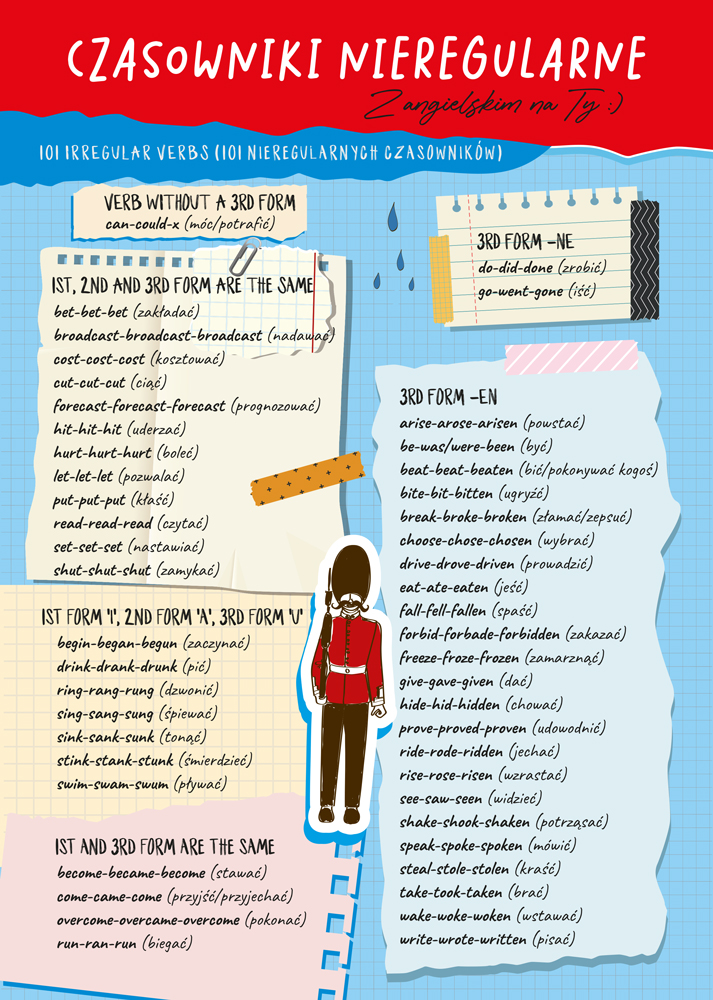 Dwustronna plansza/ściągi, wydrukowany na grubym papierze kredowym, dodatkowo pokryty folią błyszczącą. Rogi planszy są zaokrąglone.