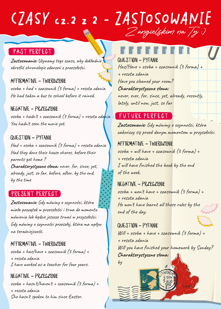 Dwustronna plansza/ściąga A4 J. ang. czasy cz.2