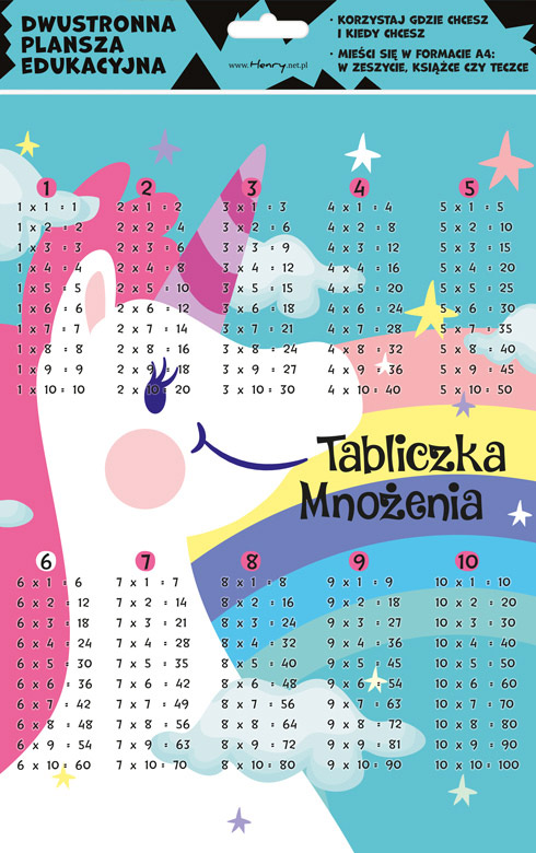 Dwustronna plansza edukacyjna w formacie A4, dwustronnie zafoliowana.