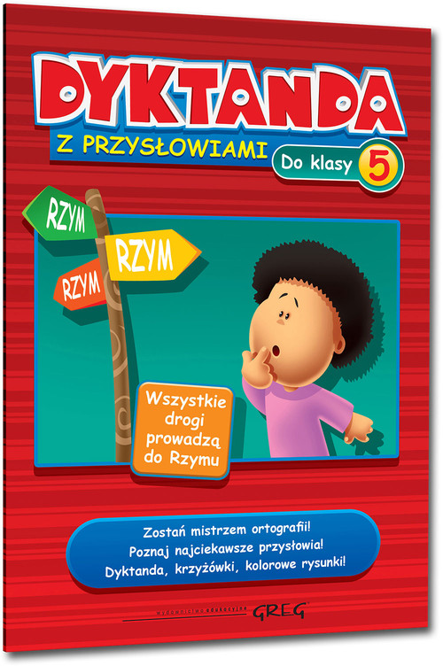 Dyktanda, ku zmartwieniu wielu uczniów, są najpopularniejszą metodą na sprawdzenie znajomości pisowni języka polskiego w szkole. Dyktanda z przysłowiami Wydawnictwa GREG sprawiają, że ta niezbyt lubiana forma sprawdzianu staje się czystą zabawą!Dzieje się tak dzięki przezabawnym tekstom, które dodatkowo w humorystyczny sposób wyjaśniają najciekawsze przysłowia, oraz kolorowym, śmiesznym rysunkom. Nie bez znaczenia są też odpowiedni, dostosowany do poziomu uczniów w klasie 5, wybór trudnych słówek oraz odpowiednia długość tekstu. Układ dyktand - od najprostszego do najtrudniejszego - pozwala uczniom doskonalić swoje umiejętności. Każde dyktando można łatwo sprawdzić, wykorzystując zamieszczony na końcu książki słowniczek. Prawdziwą gratką są natomiast krzyżówki dodane do każdego tekstu!Dzięki Dyktandom z przysłowiami każdy uczeń może stać się mistrzem ortografii! Serdecznie polecamy!
