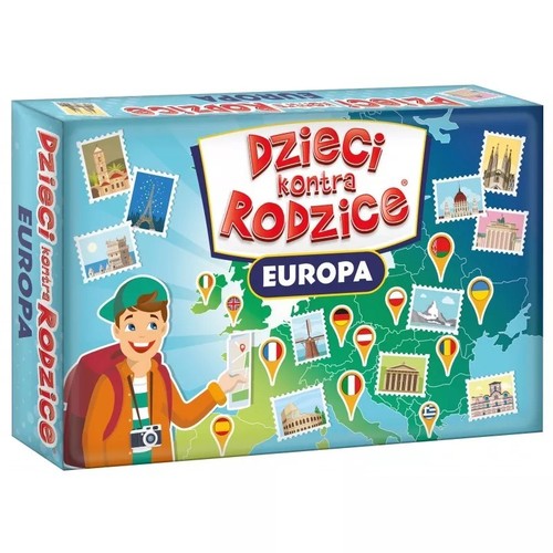 W jakim kraju przysmakiem są ślimaki i żabie udka? Gdzie zobaczymy słynny Stonehenge? W jakim języku mówi się w Belgii? Zabawne i ciekawe pytania pozwolą Wam lepiej poznać różnorodny Stary Kontynent. Poznajcie kraje, kuchnię i wiele innych interesujących faktów. Dzieci rywalizują z Rodzicami. W grze znajdziecie pytania specjalnie przygotowane dla dzieci i dla rodziców.