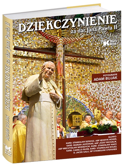 Książka jest świadectwem niezwykłego, narodowego dziękczynienia, wielkiego ogólnokrajowego modlitewnego pospolitego ruszenia, które zmobilizowało izjednoczyło Polaków po beatyfikacji, tak jak było to za życia Ojca Świętego. Piękne słowa iobrazy wpodzięce ihołdzie za tyle lat opieki nad naszą Ojczyzną - tak można podsumować album ""Dziękczynienie"". Historyczne momenty, które utrwalono dla nas idla następnych pokoleń. Już wdniu beatyfikacji Jana Pawła II rozległo się wcałej Polsce dziękczynne Te Deum iradosne bicie dzwonów. Później, przez następne miesiące, wróżnych miejscach Polski odbywały się piękne iwzruszające uroczystości ku czci nowego Błogosławionego, niejednokrotnie zwprowadzaniem relikwii do miejscowych świątyń. Album - zawierający zdjęcia Adama Bujaka, który fotografował Karola Wojtyłę 40 lat! - dokumentuje najważniejsze inajciekawsze uroczystości dziękczynne zterenu całej Polski - zWarszawy, Krakowa, Nakła nad Notecią, Nowego Targu, znad Lednicy, ze Starego Sącza, Gliwic, Poznania, Przemyśla, Tatr, Jasnej Góry itd. Ileż wtych zdjęciach wzruszenia, ileż dramatu, ileż odżywających wspomnień... Wksiążce przywołano też bardzo ważne teksty ohistorycznym wprost znaczeniu, m.in. kard. Camillo Ruiniego, kard. Stanisława Dziwisza, kard. Stanisława Ryłki, kard. Stanisława Nagyego, abp. Henryka Hosera, abp. Mieczysława Mokrzyckiego, abp. Józefa Michalika. ""Dziękczynienie"" to kolejne świadectwo niezwykłego kultu JanaPawłaII, czci okazywanej zarówno Jego osobie jak idziełom, których dokonał.