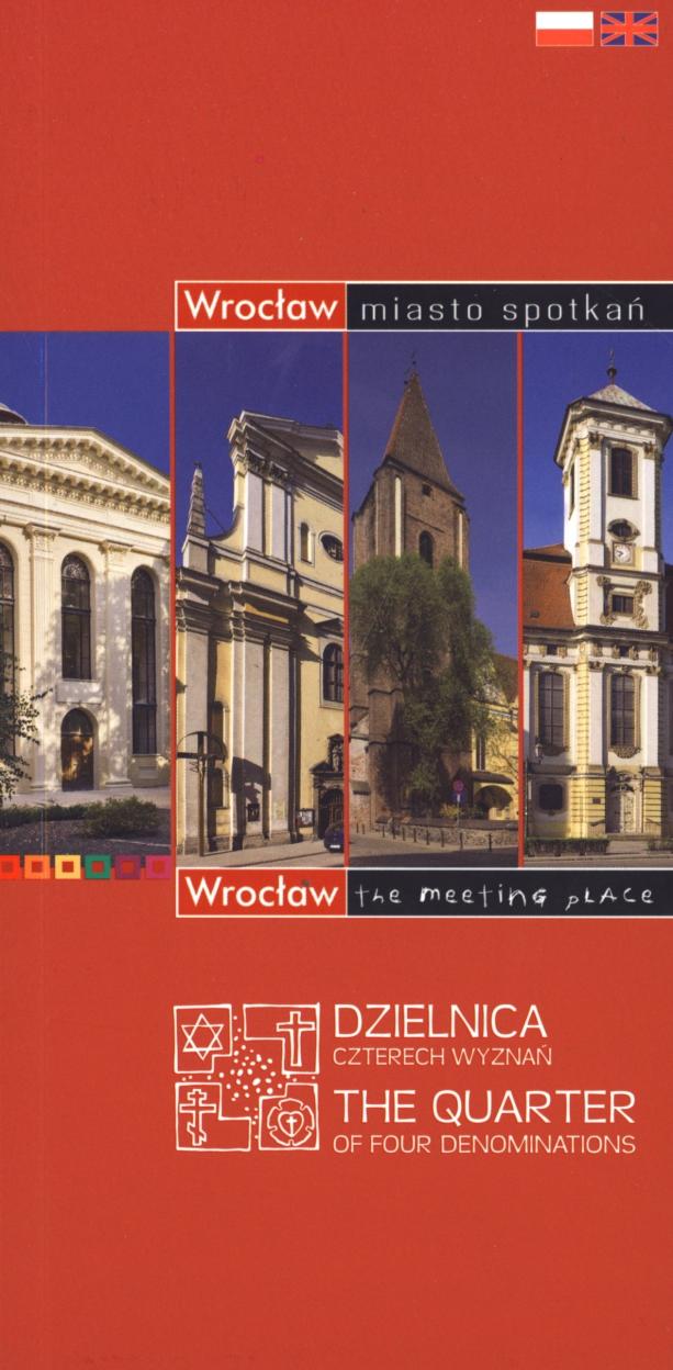 Przewodnik po Dzielnicy Czterech Wyznań Wrocławska Dzielnica Wzajemnego Szacunku nazywana też Dzielnica Czterech Wyznań to unikatowy projekt w skali Polski i Europy. Teraz ten niezwykły obszar Wrocławia doczekał się własnego przewodnika. Publikacja powstała dzięki współpracy duchownych czterech wyznań oraz Biura Promocji Miasta Wrocławia. Położone blisko: siebie Ewangelicko - augsburski kościół Opatrzności Bożej, Synagoga pod Białym Bocianem, prawosławna katedra Narodzenia Przenajświętszej Bogarodzicy i rzymskokatolicki kościół św. Mikołaja dały początek Dzielnicy Czterech Wyznań. ,,Chyba tylko we Wrocławiu mógł powstać pomysł, by sąsiadujący ze sobą wyznawcy chrześcijaństwa w obrządkach: katolickim, prawosławnym i ewangelickim oraz wyznawcy judaizmu, zamiast rywalizować ze sobą o ,,rząd dusz"" spotkali się i stworzyli Dzielnicę Czterech Wyznań"" - pisze we wstępie do przewodnika Prezydent Wrocławia Rafał Dutkiewicz.