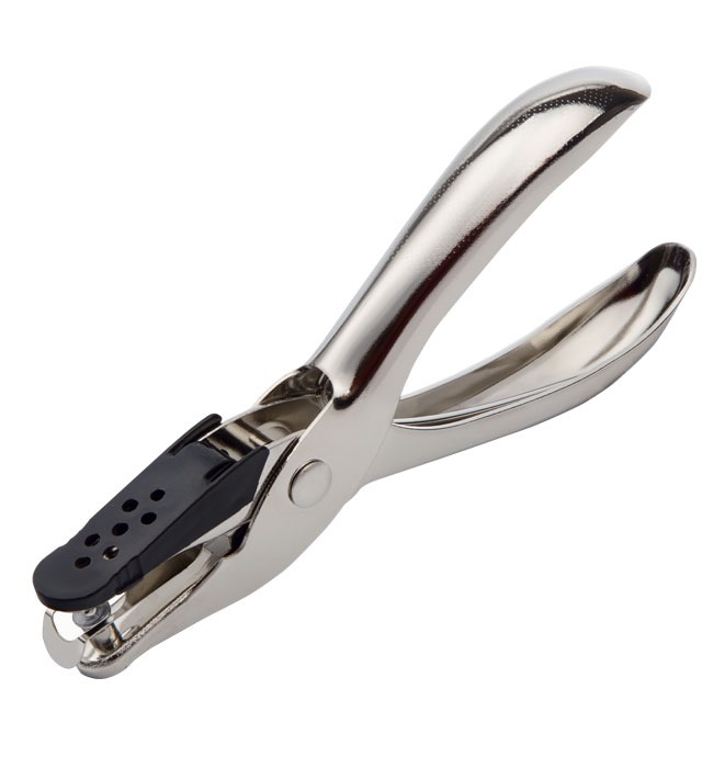 metalowy dziurkacz jednootworowy pojemnik na ścinki prowadnica ułatwiające wsuwanie papieru dziurkuje do 6 kartek średnica dziurki 6 mm gwarancja 3 lata