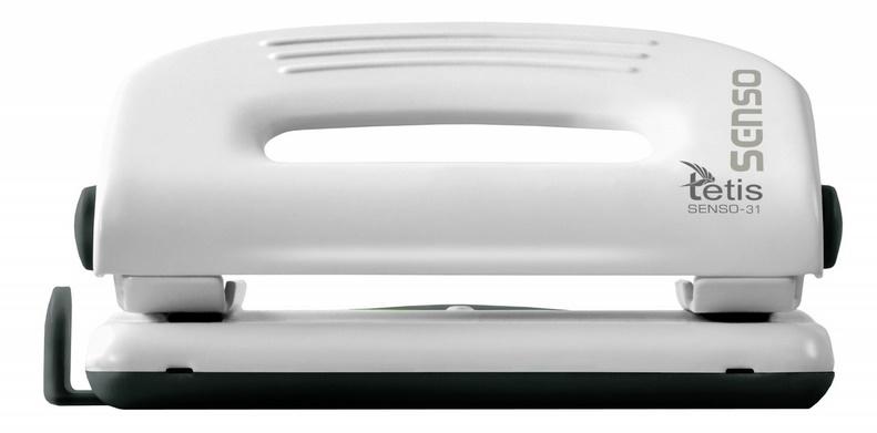 Metalowy dziurkacz biurowy z wykończeniami z tworzywa sztucznego. Kolor czarny. Posiada wskaźnik środka strony i ogranicznik formatu. Dziurkuje do 10 arkuszy. Średnica otworu 6 mm. Rozstaw dziurek 80 mm. Głębokość wsuwania kartek 12 mm. Nowatorskie rozwiązanie umożliwia usunięcie konfetti bez zdejmowania całego spodu.
