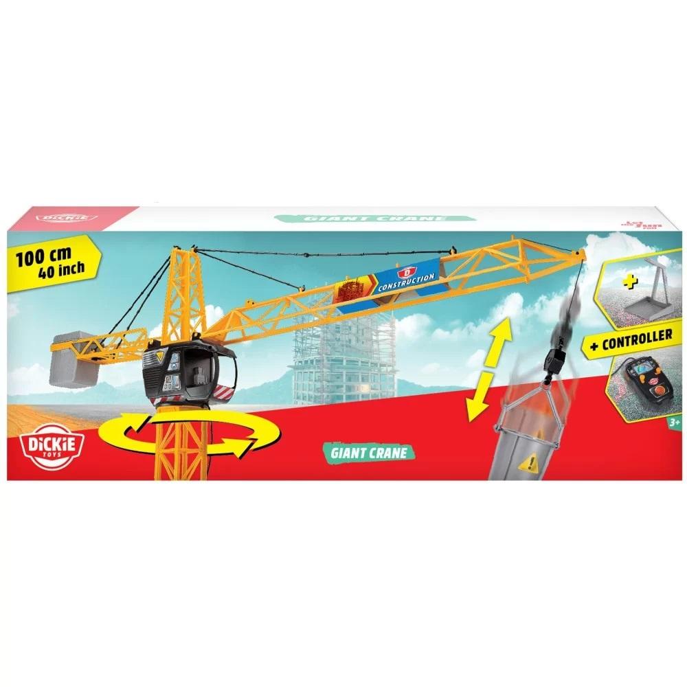Dźwig Gigant żuraw Zdalnie sterowany 100 cm 1139013 to idealna zabawka dla dzieci lubiących zabawę z elementami konstrukcyjnymi. Żółty, wysoki żuraw sterowany jest za pomocą pilota, posiada stabilną, czteroramienną podstawę, która zapewnia stabilność podczas zabawy. Przy szczycie dźwigu wmontowano kabinę z miejscem dla figurki budowlańca. Ruchome ramię służy do podnoszenia różnego rodzaju ładunków. Dzięki funkcjom na pilocie, istnieje możliwość podnoszenia i opuszczania załadunku, a ramię żurawia obraca się aż o 350 stopni.