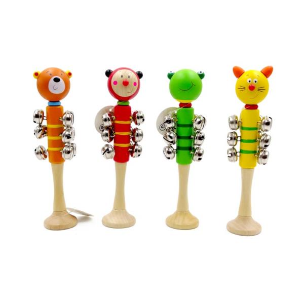 Mix wzorów, towar wysyłany losowo. Metalowe dzwoneczki na drewnianym uchwycie wprowadzą dziecko w świat muzyki. Idealne do tańców, zabaw i na rytmikę. wymiary 20 cm wiek 3+