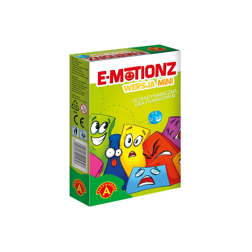 plansza, kostki z emocjami, żetony określające ruch, karty, pionki tekturowe, podstawki do pionków, pchełki, woreczek, instrukcja.