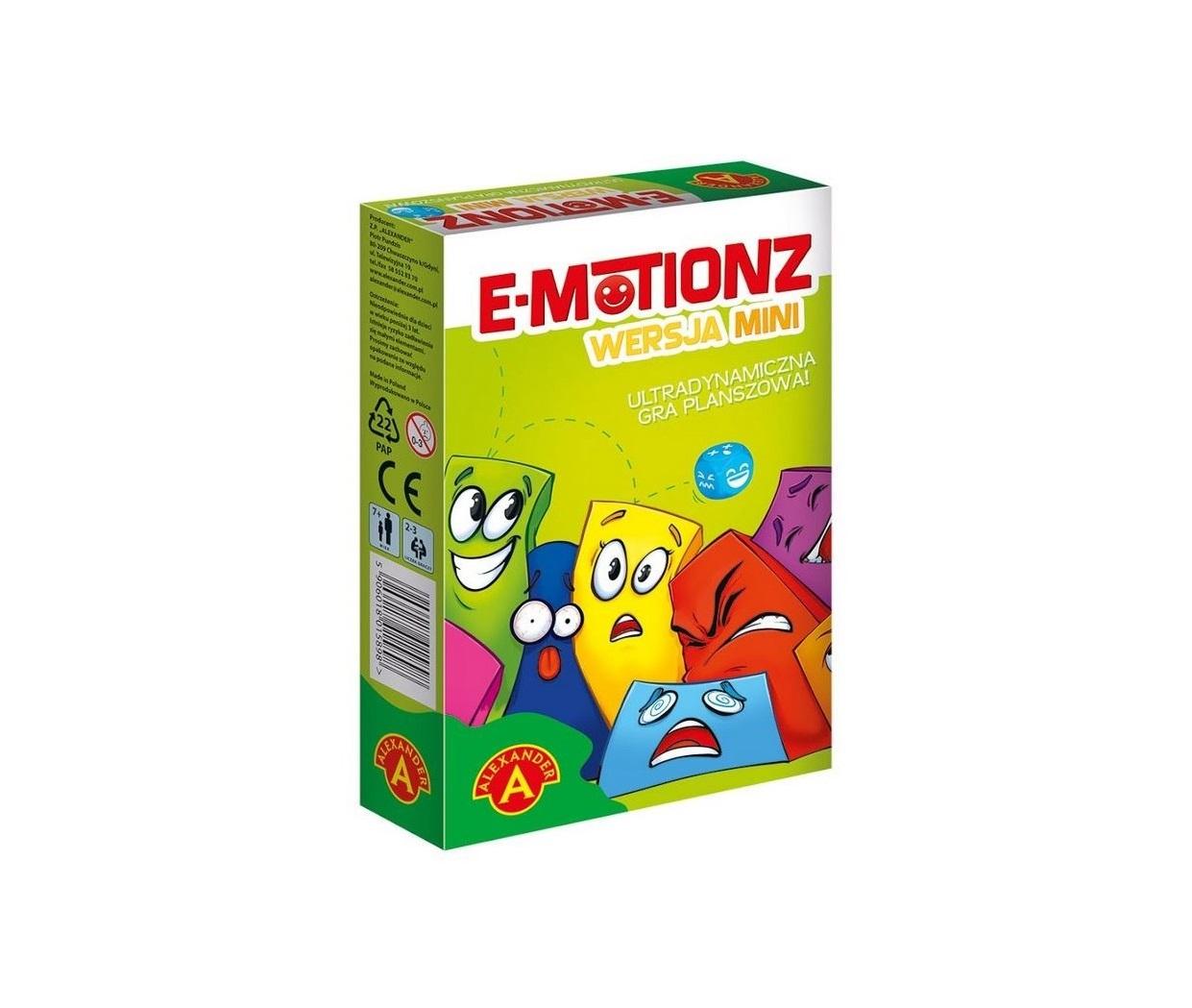 Prawdziwe wyzwanie dla wszystkich, którzy lubią szybką, dynamiczną rozrywkę. Zabawa dla każdego niezależnie od wieku. Mechanizm gryjest tak skonstruowany, że równe szanse ma zarówno dziecko, rodzic jak i senior. Nieważne ile masz lat, nieważne jaką wiedzą dysponujesz. W tym szalonym wyścigu wygra ten kto ma bystre oko i prędkie dłonie. Każdy z graczy dysponuje sześcioma kostkami, na których narysowane są emotki. Losujemy kartę wskazującą konfigurację emotek, które musimy wyrzucić. Wszyscy gracze rzucają kośćmi jednocześnie. Jeżeli wyrzucamy minki pasujące do naszej konfiguracji, odkładamy