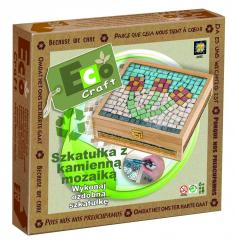 Szkatułka z kamienną mozaiką Eco Craft – wykonaj ozdobną szkatułkę Zawartość: - Drewniana szkatułka - Proszek gipsowy - Klej - Gąbka - Szablon - Penseta - Elementy kamiennej mozaiki - Instrukcja Wiek: 6+