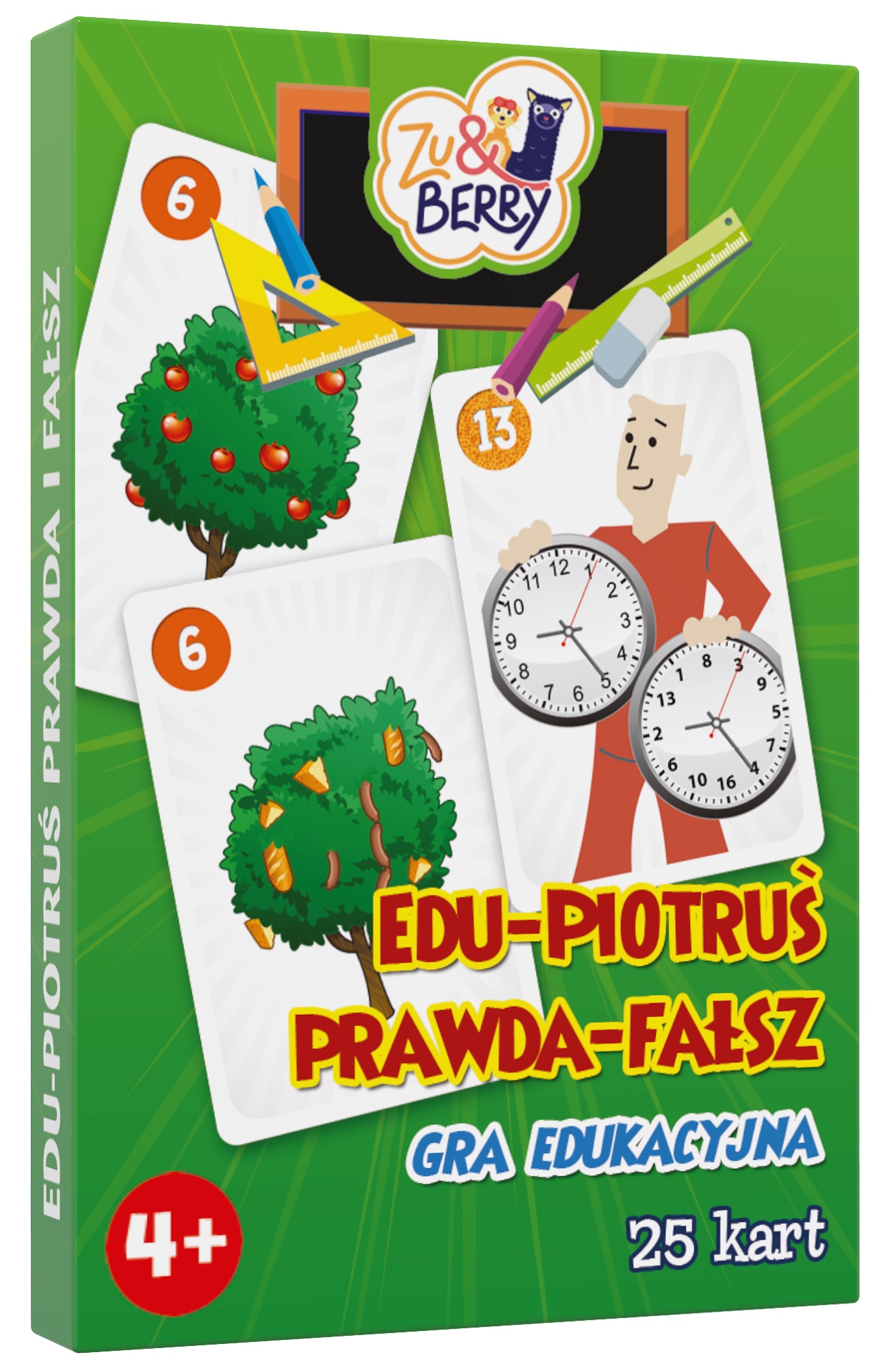 Edu - Piotruś to dobrze znana wszystkim polskim dzieciom gra, w ciekawym wydaniu łączącym zabawę z nauką. Wszystkie karty w tej talii zdobią ilustracje, które przedstawiają coś prawdziwego lub fałszywego.