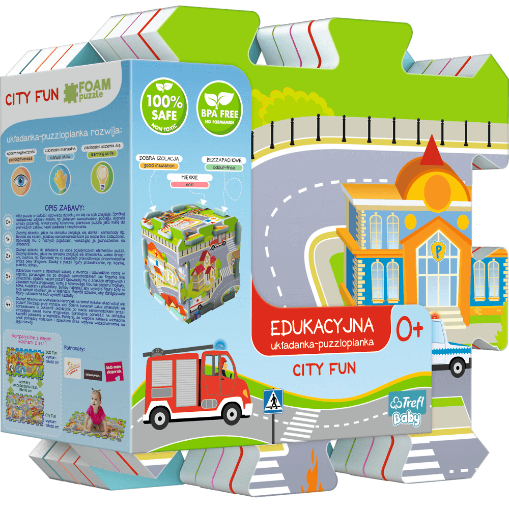 Ułożone puzzle mogą posłużyć jako podkładka przy zabawie plasteliną lub malowaniu. W przypadku zabrudzenia wystarczy je przetrzeć wilgotną ściereczką.