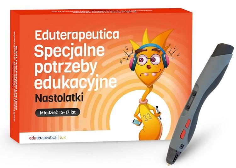 SPE Nastolatki z serii Eduterapeutica lux to multimedialny program do terapii dysleksji rozwojowej i dyskalkulii wśród uczniów szkół ponadpodstawowych. Program jest wsparciem dla nauczycieli specjalistów oraz pedagogów odpowiedzialnych za udzielenie pomocy uczniom ze specjalnymi potrzebami edukacyjnymi.