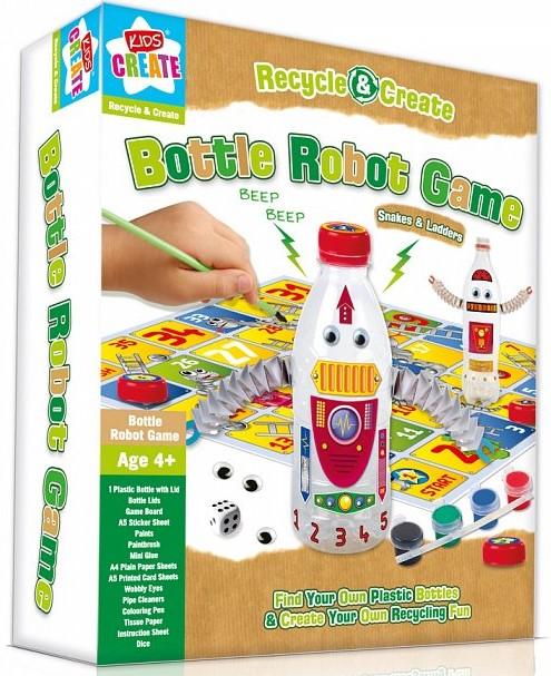 Zawartość opakowania: 1 butelka plastikowa z zakrętką, dodatkowe zakrętki, plansza do gry ""Węże i drabiny"", arkusz A5 z naklejkami, farby, pędzelek do malowania, mini klej, czyste arkusze A4, kolorowe arkusze A5, oczy do ozdobienia, oczyszczacze do rurek, pisak, instrukcja do gry, kostka