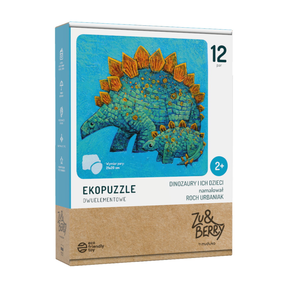 Puzzle Dinozaury i ich dzieci, w których łączymy w pary dorosłego dinozaura i młodego osobnika, są nie tylko narzędziem wspomagającym motorykę małą u dzieci. Dają też okazję do rozmowy o prehistorycznych gadach oraz zainspirowanych nimi… smokach, ale również o relacjach między rodzicami a dziećmi. Do zestawu dołączone są zadania, które pozwalają ćwiczyć wiele umiejętności.