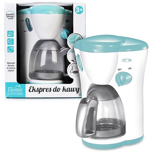 Ekspres z dźwiękiem i podświetlaną diodą, możliwość wlania wody, która po przekręceniu pokrętła przelewa się ze zbiornika do dzbanka.
