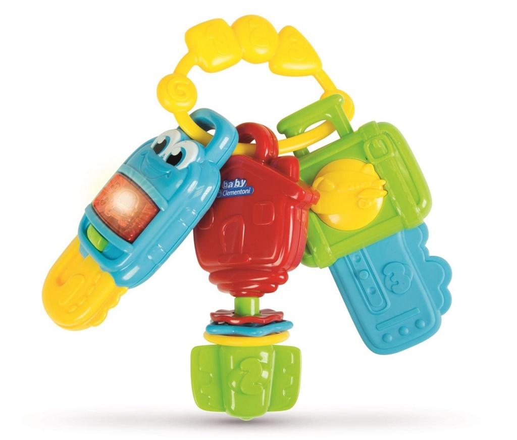 3 kluczyki o zabawnych funkcjach do zabawy i rozwijania umiejętności manualnych oraz postrzegania zmysłowego u dzieci. Jeden elektroniczny kluczyk ze światełkami i dźwiękami, jeden miękki zamykany kluczyk i jeden kluczyk klik klak z grzechotkami.