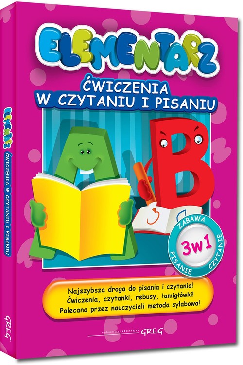 Elementarz - ćwiczenia w czytaniu i pisaniu to absolutna nowość na rynku wydawniczym. To elementarz do nauki czytania metodą sylabową i zeszyt ćwiczeń w jednym!Książka podzielona jest na dwie części. W pierwszej zaprezentowane są literki, pokazany jest sposób ich zapisywania, jak łączą się z innymi literkami, tworząc sylaby, słowa i zdania. Mnóstwo zadań i ćwiczeń sprawia, że dzieci błyskawicznie przyswajają nowe wiadomości. W książce znajduje się dużo łamigłówek i zabaw, dzięki którym mali uczniowie mogą oderwać się i odpocząć podczas nauki. Są więc rebusy, labirynty, krzyżówki.Druga część ćwiczeń zawiera czytanki do czytania metodą sylabową oraz wiersze dla dzieci wraz z zadaniami do nich. Dzięki nim dzieci uczą się czytania ze zrozumieniem oraz ćwiczą pisanie. Łamigłówki zapewnią mnóstwo wspaniałej zabawy, a piękne, kolorowe ilustracje uprzyjemnią pracę z książką.Elementarz - ćwiczenia w czytaniu i pisaniu to recepta na to, by każde dziecko nauczyło się pięknie pisać i płynnie czytać.