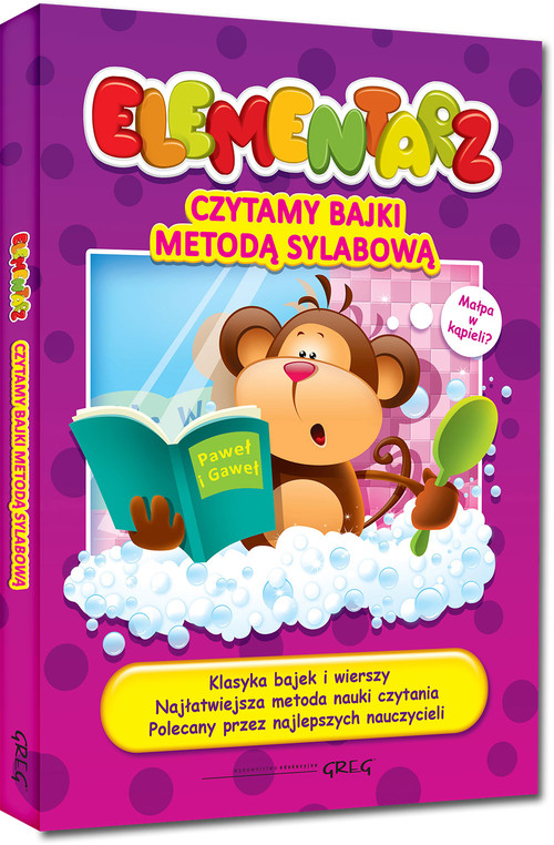 Elementarz - czytamy bajki metodą sylabową to książka doskonała dla każdego dziecka, które chce nauczyć się czytać. Zastosowano w niej metodę sylabową, która jest popularna od lat i niezwykle skuteczna. Dzięki niej już kilkuletnie maluchy zdobywają umiejętność czytania! Dziecko poznaje literki, następnie składa z nich sylaby, by przejść do odczytywania wyrazów i całych zdań. Poziom trudności wzrasta stopniowo, dzięki czemu nauka czytania jest szybka i bezproblemowa, a dziecko czyta płynnie i ze zrozumieniem.Wielką atrakcją Elementarza... są zamieszczone w jego drugiej części czytanki - najbardziej znane bajki, klasyka polskiej literatury dziecięcej. Są tu więc bajki Krasickiego, Fredry, Mickiewicza, popularne wiersze Jachowicza czy Konopnickiej. Gwarantują one doskonałą zabawę, która jednocześnie utrwali umiejętność czytania i rozbudzi w dziecku miłość do polskiej literatury.Elementarz - czytamy bajki metodą sylabową to książka przygotowana z najwyższą starannością, we współpracy z doświadczonymi nauczycielami i metodykami. Twarda, kolorowa okładka gwarantuje trwałość książki, a piękne ilustracje i barwne strony przyciągną oko małego czytelnika.