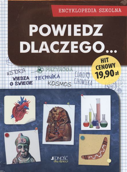 Zwięzłe odpowiedzi na setki interesujących pytań z wielu dziedzin nauki to coś, czego poszukują zarówno dzieci, młodzież, jak i dorośli. Encyklopedia szkolna: Powiedz, dlaczego... to książka, która powinna znaleźć się na półce biblioteczki każdego dziecka i nastolatka ciekawego otaczającego go świata, jego reguł i historii. Znajdują się w niej krótkie, treściwe i ciekawie napisane, a przy tym zawsze łatwe do zrozumienia odpowiedzi na wiele pytań z różnych dziedzin nauki, od biologii po historię i od astronomii po sztukę. Polecamy tę książkę każdemu uczniowi!Odbiorcy: dzieci ciekawe świata; młodzież szkolna interesująca się różnymi dziedzinami nauki i poszukująca zwięzłych odpowiedzi na pytania; dorośli poszukujący zwięzłych odpowiedzi na pytania zadawane przez dzieci. Dlaczego warto nabyć tę książkę? Zawiera krótkie i treściwe odpowiedzi na wiele pytań; skłania do poszerzania wiedzy; jest rodzajem kompendium wielu różnych dziedzin nauki; ma przejrzystą szatę graficzną.