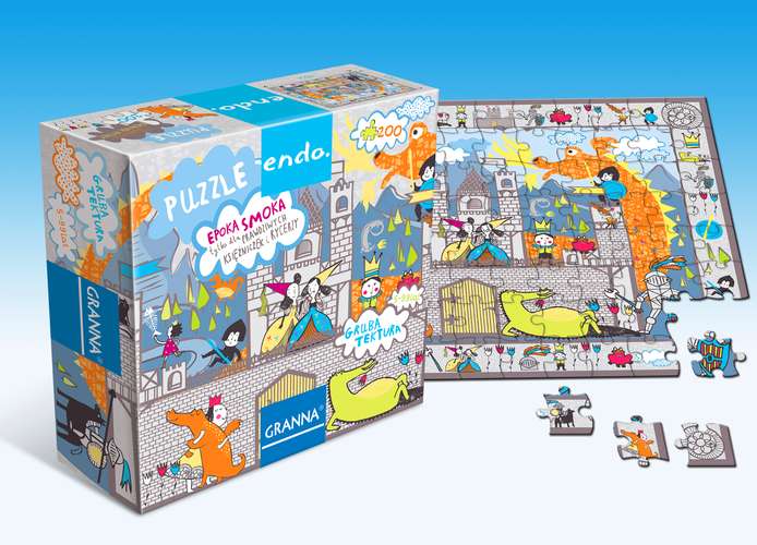 Tylko dla prawdziwych księżniczek i rycerzy.Piękne puzzle przygotowane wspólnie z ENDO, składające się z 200 elementów. Każdy z nich jest dwustronny, pierwsza strona to klasyczne puzzle, a druga to kolorowanka dla najmłodszych. Wszystkie elementy zostały wykonane z grubej, wytrzymałej i bezpiecznej dla dzieci tektury