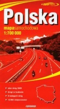 Mapa samochodowa Polski?stan dróg 2011, 10 kategorii dróg, autostrady i drogi ekspresowe wraz z węzłami, płatne odcinki autostrad, budowane autostrady, drogi ekspresowe i krajowe?odległości drogowe w kilometrach, szczegółowa numeracja dróg?przejścia graniczne, promy samochodowe, międzynarodowe porty lotnicze?parki narodowe?cieniowanie plastycznie pokazujące ukształtowanie terenuskorowidz ponad 13 500 miejscowości