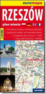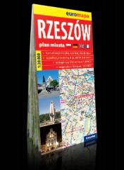 Szczegółowy rysunek zabudowy wraz z numeracją budynków wzdłuż ulic i na osiedlach, linie autobusowe wraz z przystankami, sygnalizacja świetlna, ulice jednokierunkowe, parkingi, bogata treść turystyczna, m.in.: piesze szlaki turystyczne, zabytki, muzea, hotele i domy wczasowe, schroniska młodzieżowe i inne istotne obiekty, budynki użyteczności publicznej, centra handlowe, szczegółowy plan centrum w skali 1:10 000 (1 cm - 100 m), mapa okolic Rzeszowa w skali 1:750 000 (1 cm - 7,5 km), skorowidz ulic, informator teleadresowy.