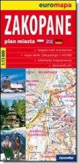Zakopane i okolice, plan miasta w skali 1:15 000 Mapa papierowa (EuroMapa). tereny narciarskie w Zakopanem i okolicach hotele, pensjonaty, domy wczasowe restauracje, bankomaty