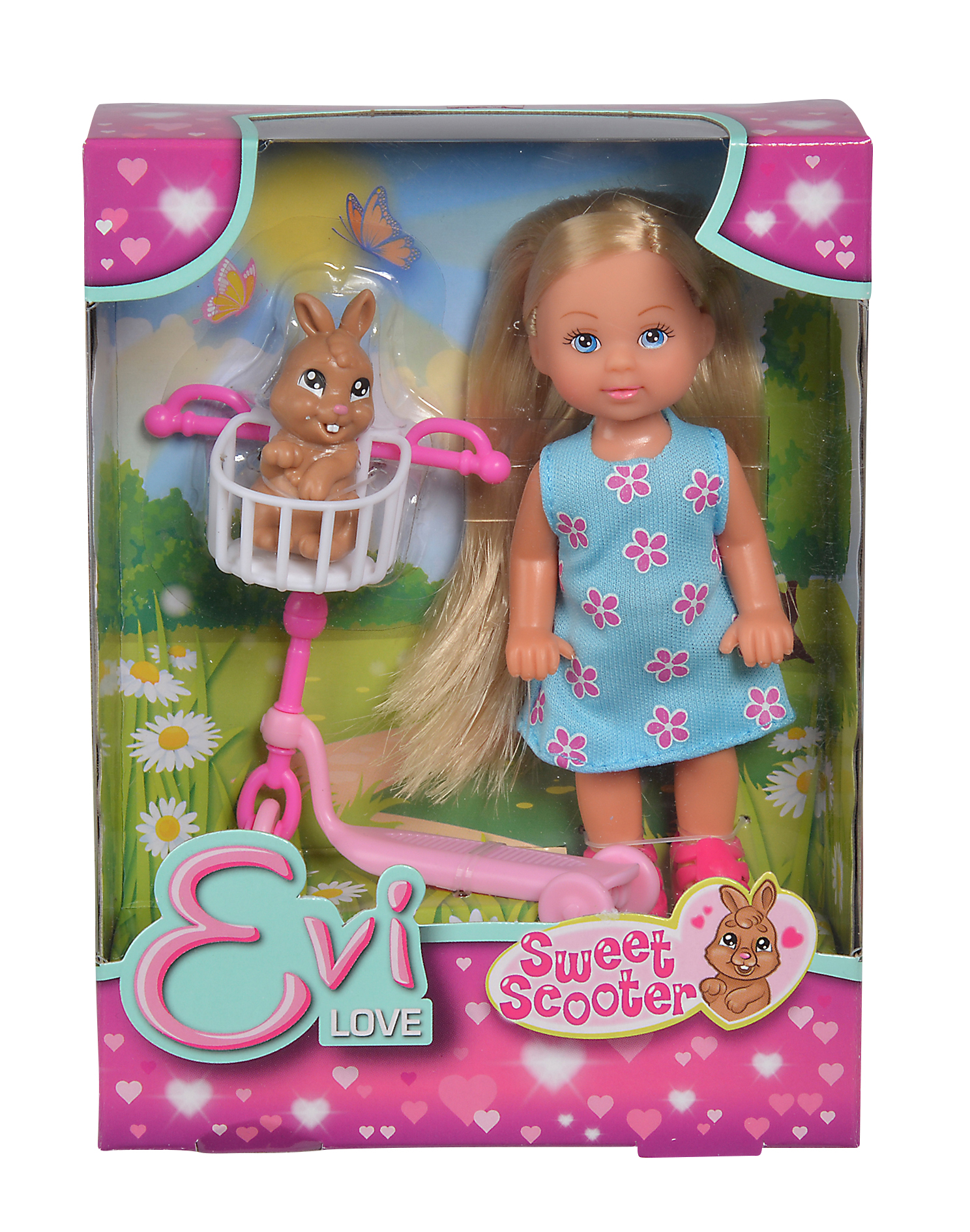Laleczka Evi na huajnodze, towarzyszy jej króliczek, wysokość: 12 cm