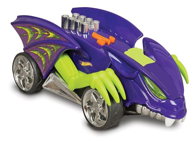 Kosmiczny samochód w kształcie nietoperza z przyciskami akcji, które aktywują ruch skrzydeł, światło, muzykę, dźwięki oraz jazdę do przodu i do tyłu.