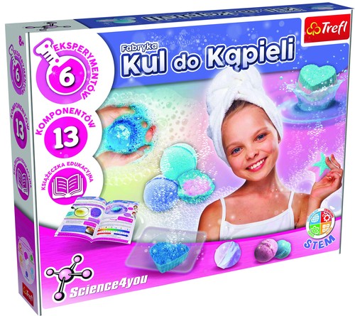 Dzięki zestawowi Fabryka kul do kąpieli Science4You dowiesz się czym są kule do kąpieli, kto i kiedy je wymyślił i co aspiryna miała z tym wspólnego? Czy faktycznie kule muszą mieć kształt kul? Poznaj historię kąpieli, jak wyglądała w czasach starożytnych, kiedy traktowano ją jako wydarzenie towarzyskie, a kiedy była zakazana. Odkryj z czego składają się kule, jakie mają właściwości, kolory i zapachy. Poznaj naukowe oblicze kul, jakie reakcje chemiczne w nich zachodzą, i co sprawia, że kule buzują w wodzie – poznaj zjawisko eferwescencji. Dowiedz się jakie składniki należy dodać do kul, aby zmienić ich kolor, zapach i właściwości. Zaobserwuj jaki wpływ na twoją skórę ma stosowanie kąpieli z kulami. Podejmij naukowe wyzwanie i zaobserwuj jaki wpływ ma temperatura wody na rozpuszczanie się kul. Do wykonania: 6 eksperymentów.