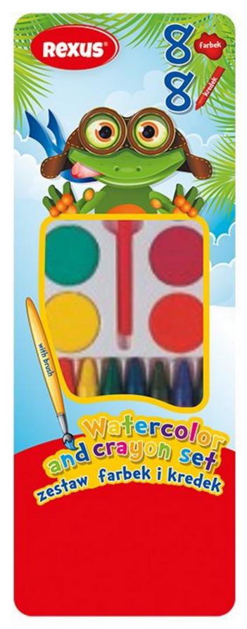 Farbki akwarelowe 8 kolorów + kredki woskowe 8 kolorów