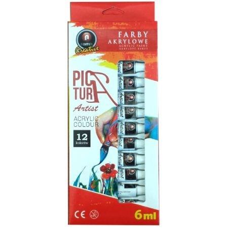 Farby akrylowe 12 kolorów w tubie 6 ml.