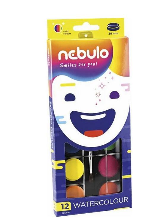 Zestaw 12 farb akwarelowych o żywych kolorach. Wysoka jakość. W zestawie z pędzelkiem. Farba łatwo się rozpuszcza i zapewnia równomierne wykończenie. Okrągłe farby umieszczane są w plastikowym pudełku, które zostało zaprojektowane tak, aby zminimalizować przypadkowe mieszanie różnych kolorów. Średnica farby 28 mm.