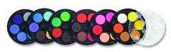 Pastylki farbek akwarelowych umieszczone po sześć kolorów w specjalnych modułowych pudełkach. Poszczególne moduły można ze sobą łączyć piętrowo (skręcając ze sobą) uzyskując kombinacje 6, 12 lub 24 kolorów.