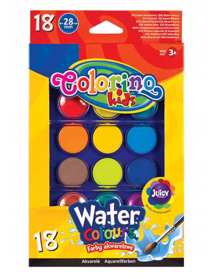 Farby akwarelowe Colorino kids, 18 kolorów w palecie.