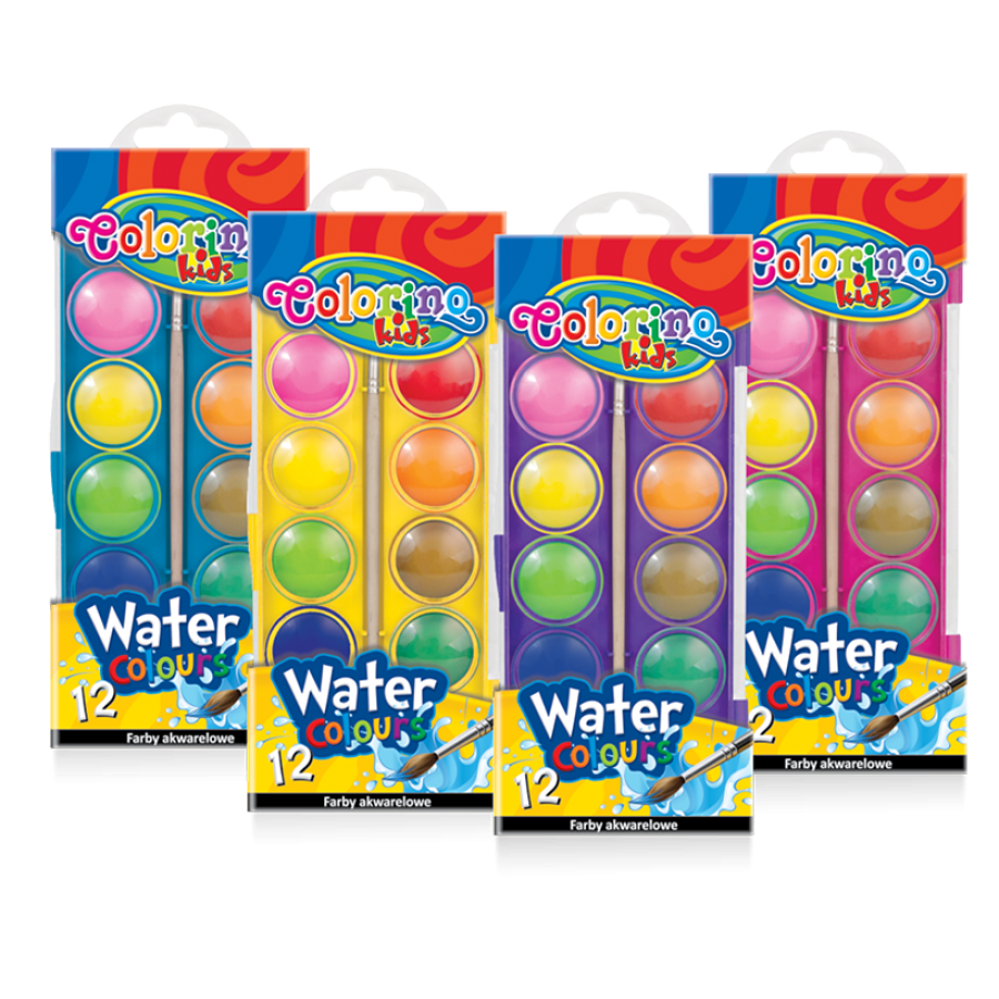 Zestaw farb akwarelowych w plastikowym pudełku, 12 kolorów.