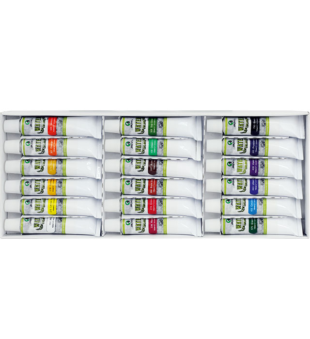 pakowane w trwałe, aluminiowe tubki, chroniące przed wysychaniem i zapobiegające ulatnianiu się zapachu farb