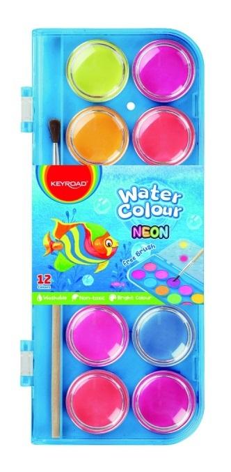 Farby akwarelowe KEYROAD z pędzelkiem neonowe 12 kolorów