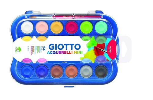 Farby awarelowe Giotto Aquarell Kolor Mini w poręcznej paletce z pędzelkiem.
